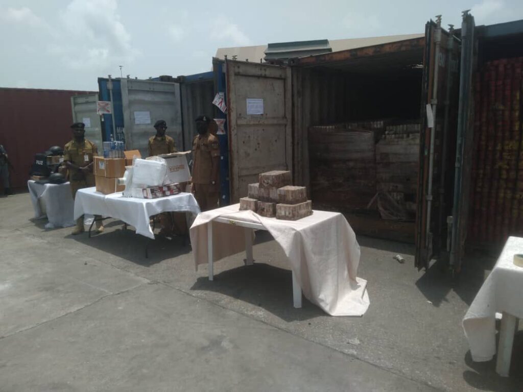 Other pharmaceutical seizures included cartons of Artesunate injections, while a separate container was discovered to contain restricted security equipment such as bulletproof vests, helmets, walkie-talkies and tactical torches imported without the required End User Certificates.